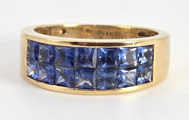 • 2625: Vintage; 18ct Gold Ceylon Blue Sapphire Tiered Ring- Fabulous