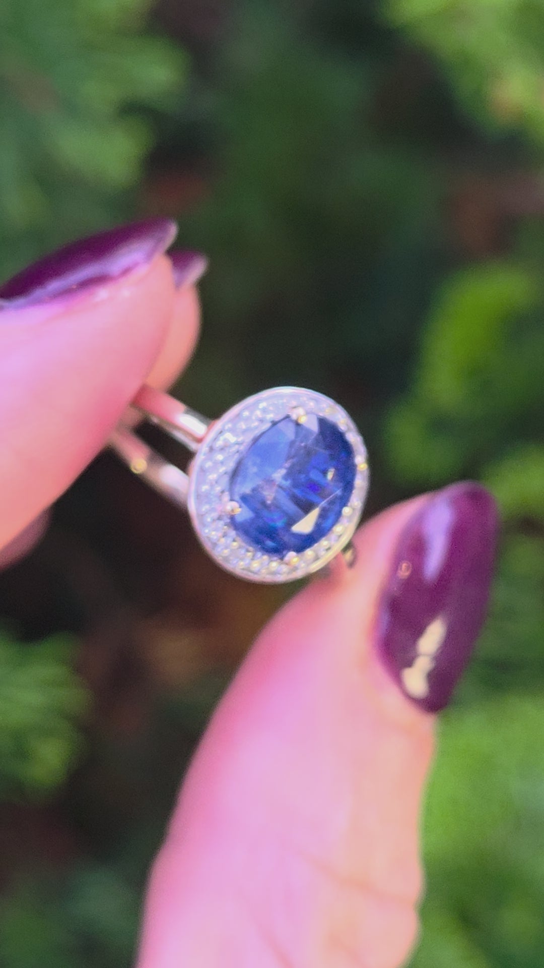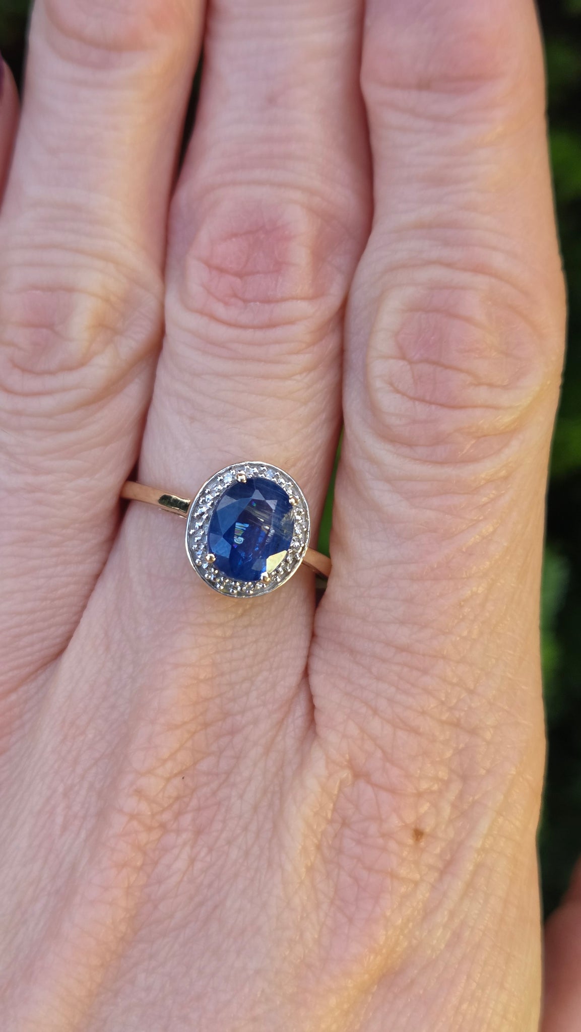 Vintage: 9ct Gold Persian Blue Sapphire Diamonds Dress Ring- lovely cut and colour
