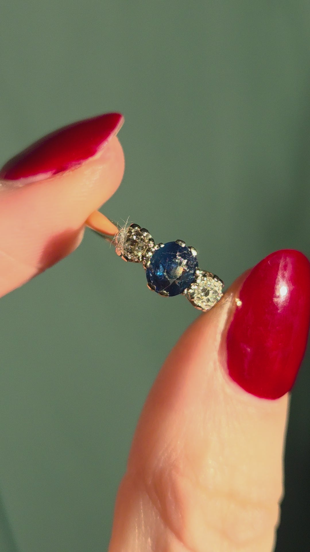 STONES: A sapphire [0.75 carat] and two diamonds [0.34 carat]
