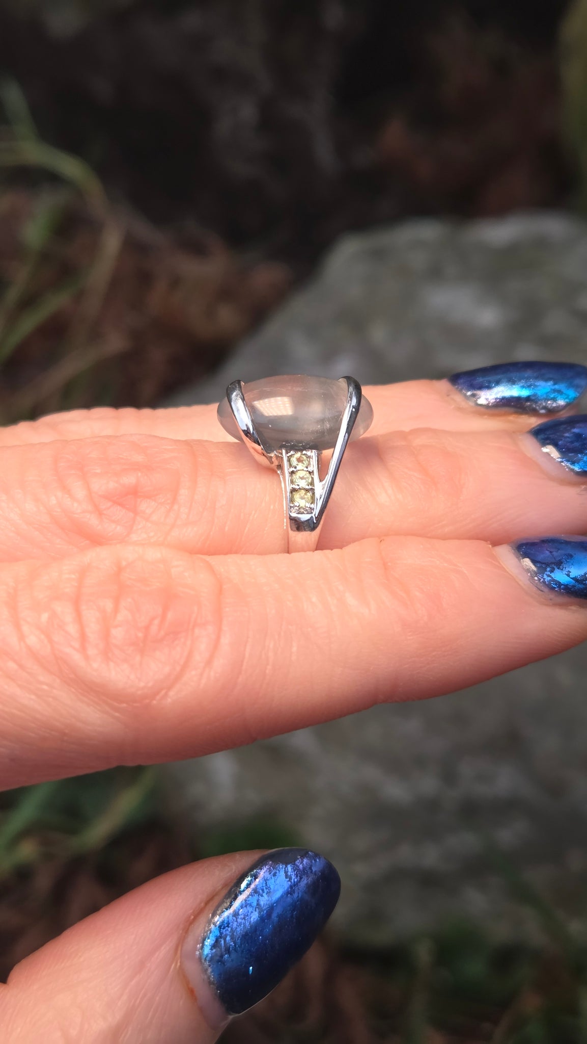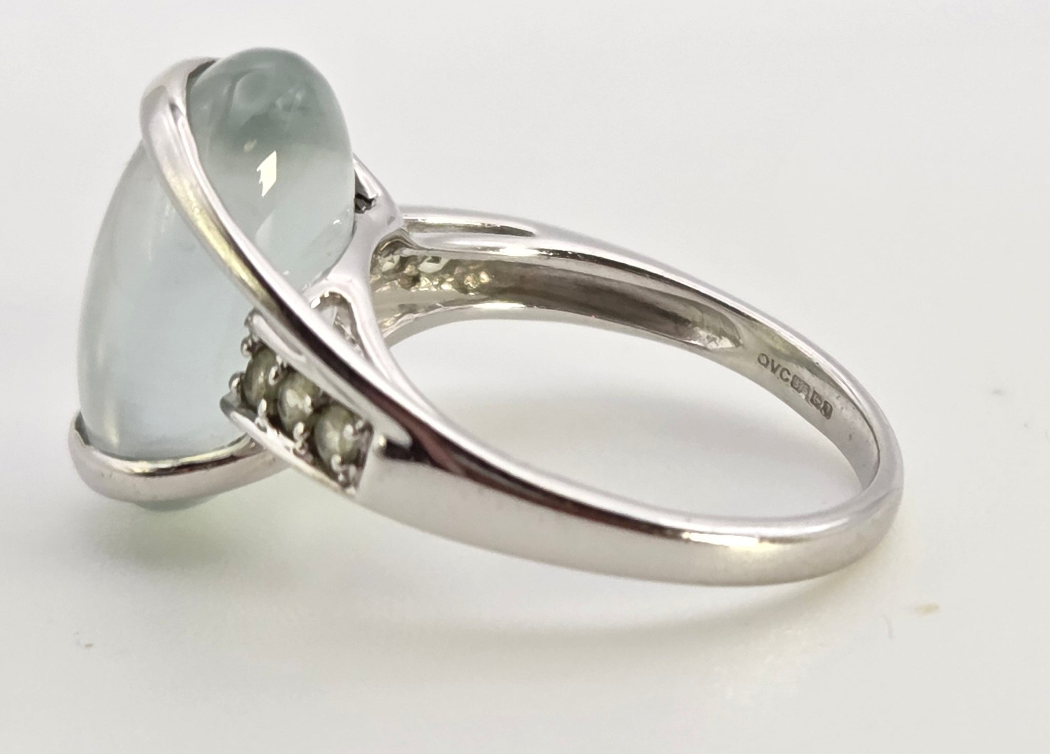 2460 Vintage Rare 9ct White Gold  Mint Green Prehnites Cocktail Ring