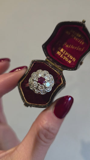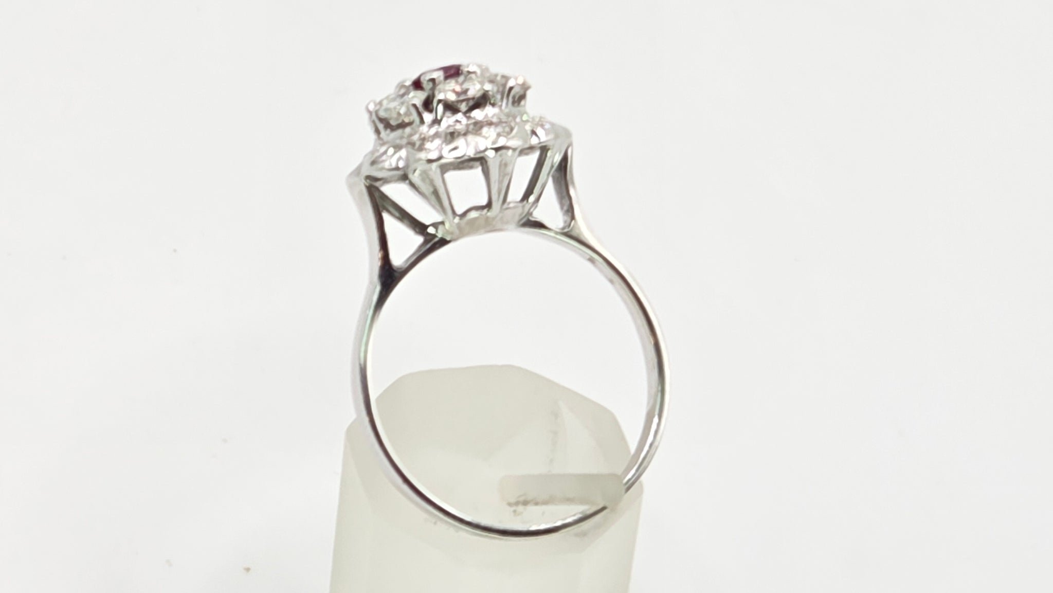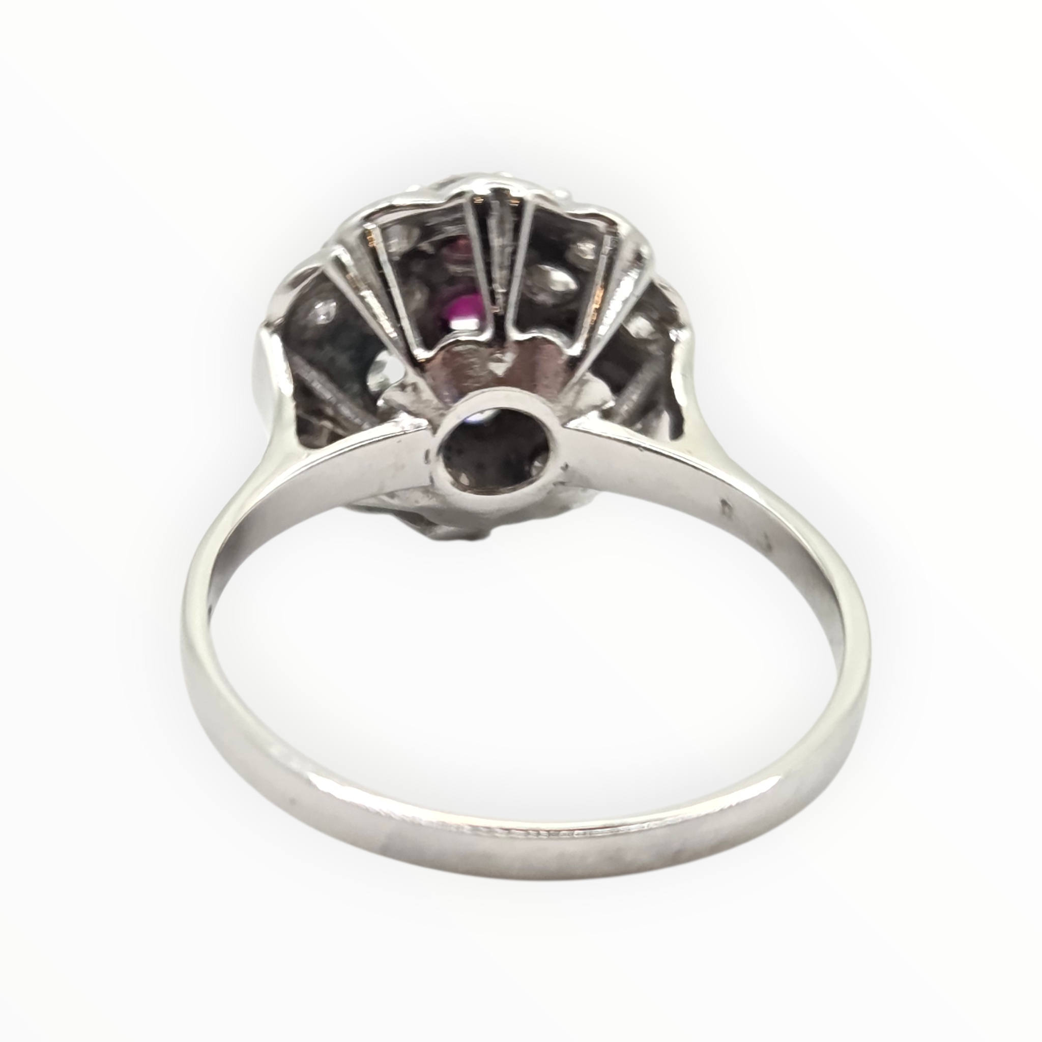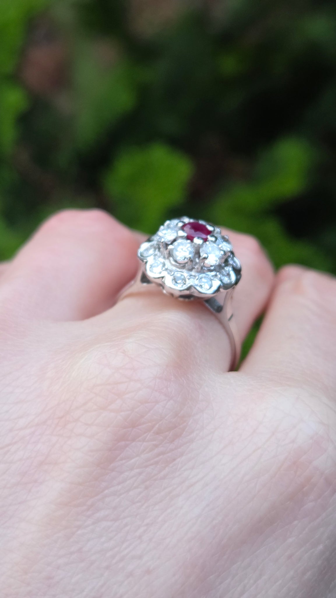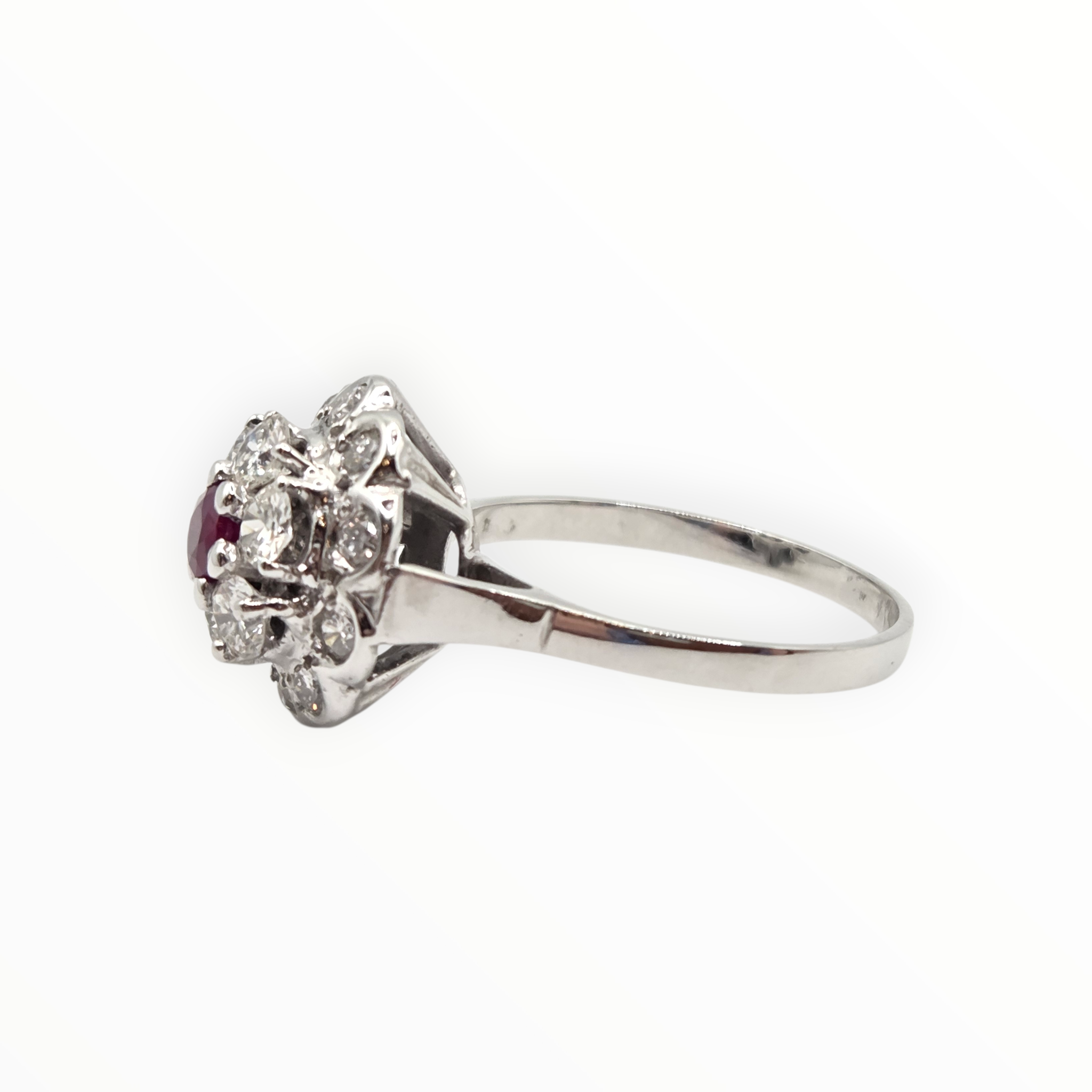 2821- Vintage 14ct White Gold Ruby Natural Sparkling Diamonds (1.58ct) Cluster Ring
