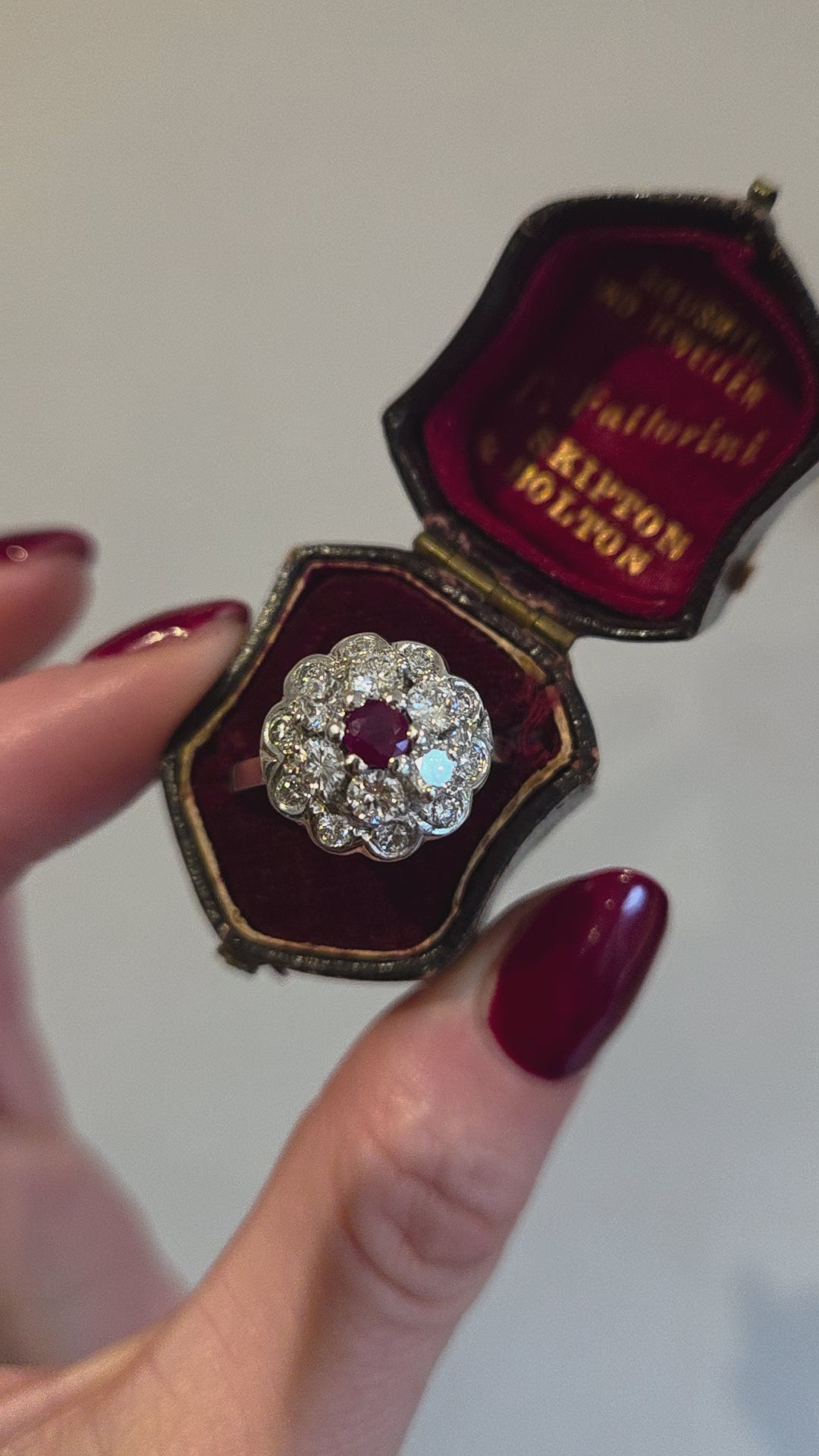 STOCK CODE: 2821- She is all about the Diamonds. A gorgeous red ruby which is showcased with over 1.5ct of diamonds. Supplied with an independent gemmologist content appraisal.