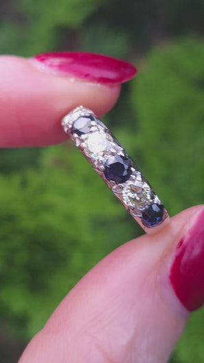 7479- Vintage: Exceptional 18ct White Gold Diamonds Sapphires Half Eternity Ring