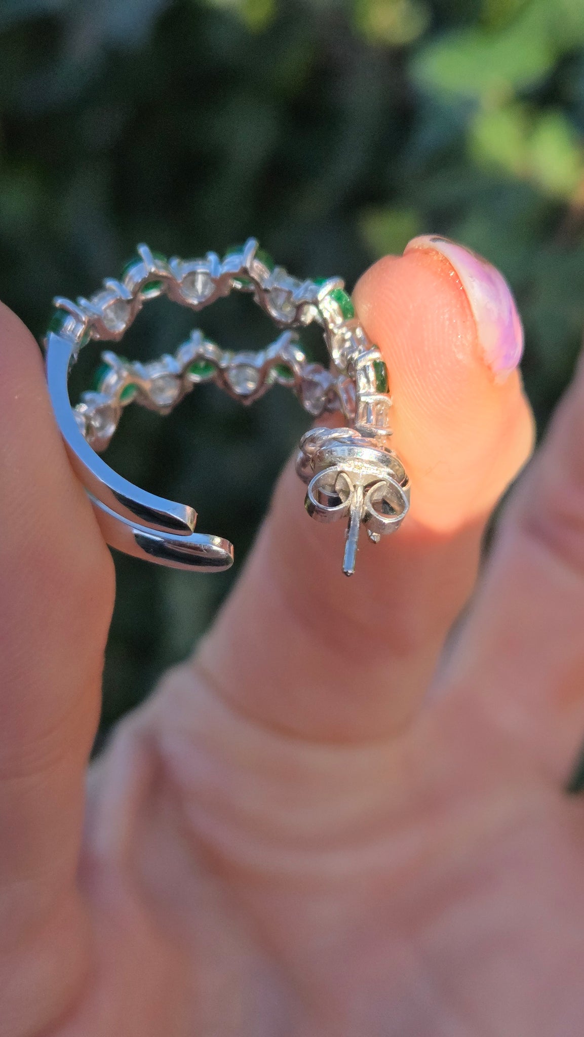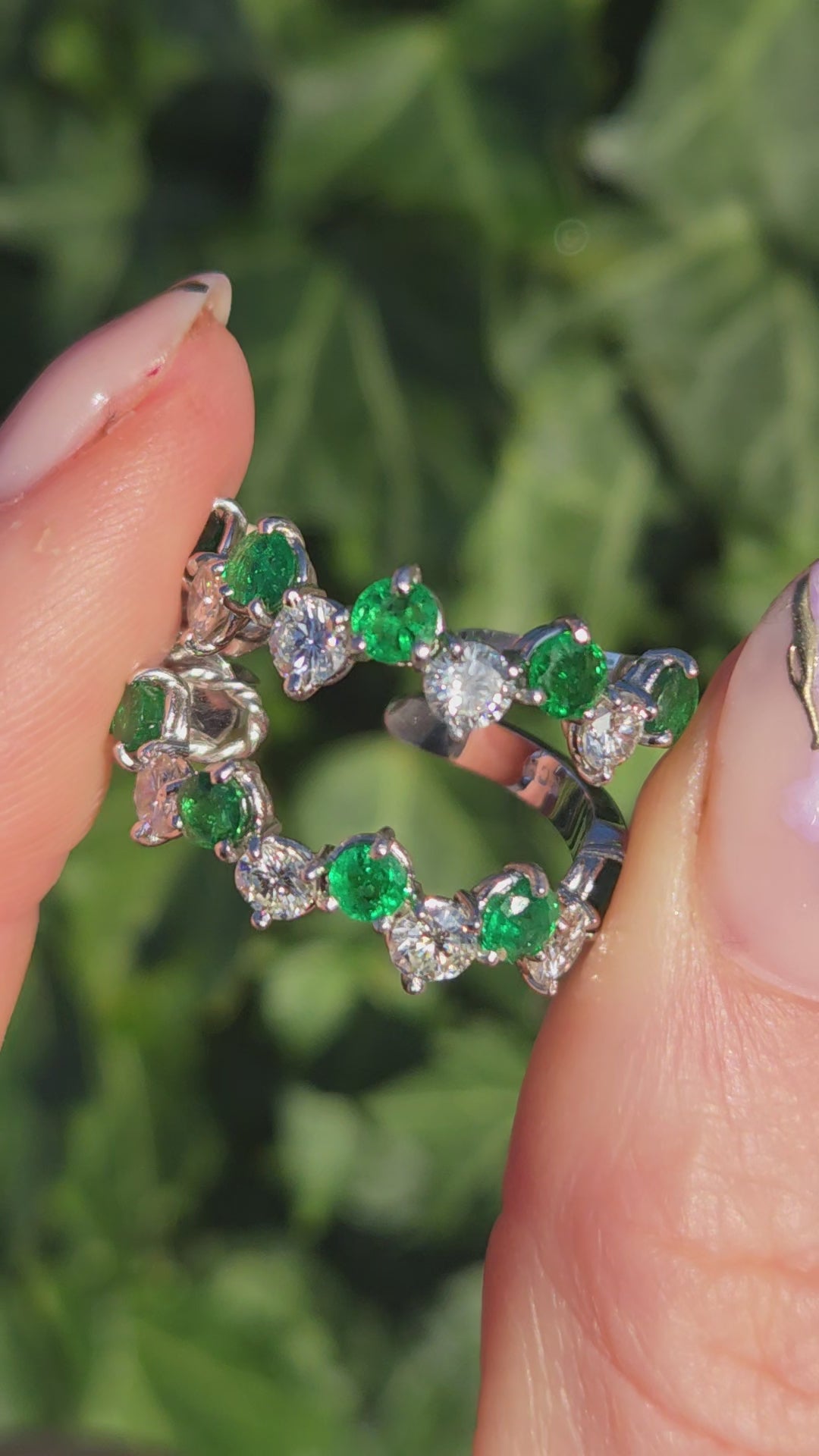 Vintage (1975) Exceptional 18ct White Gold Emeralds Diamonds Hoop Earrings- 50 Years of Age- elegant statement piece