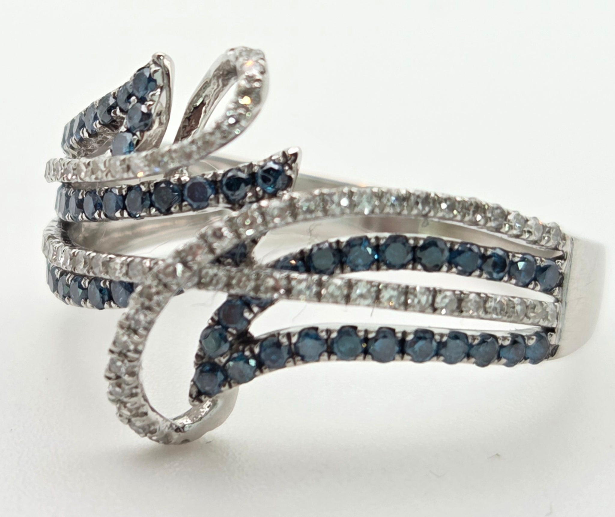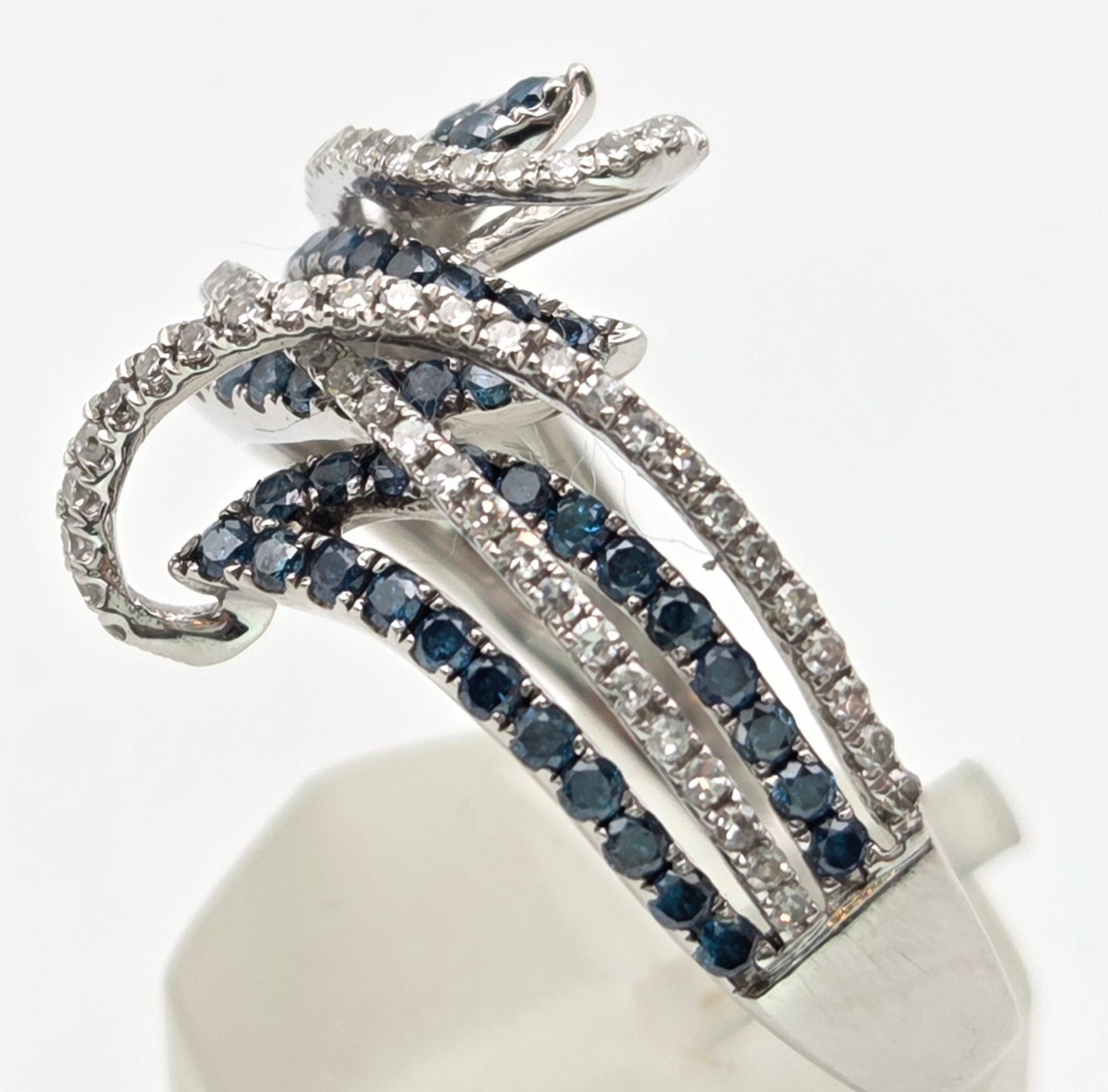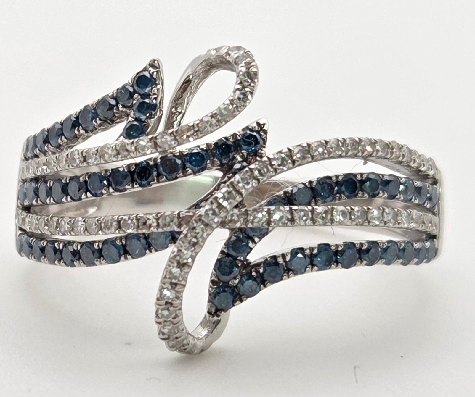 1795 14ct White Gold Blue & White Natural Diamonds Crossover Ring