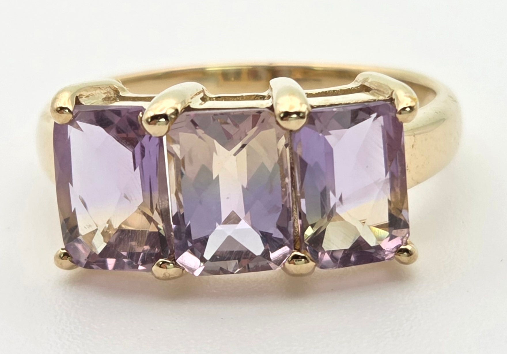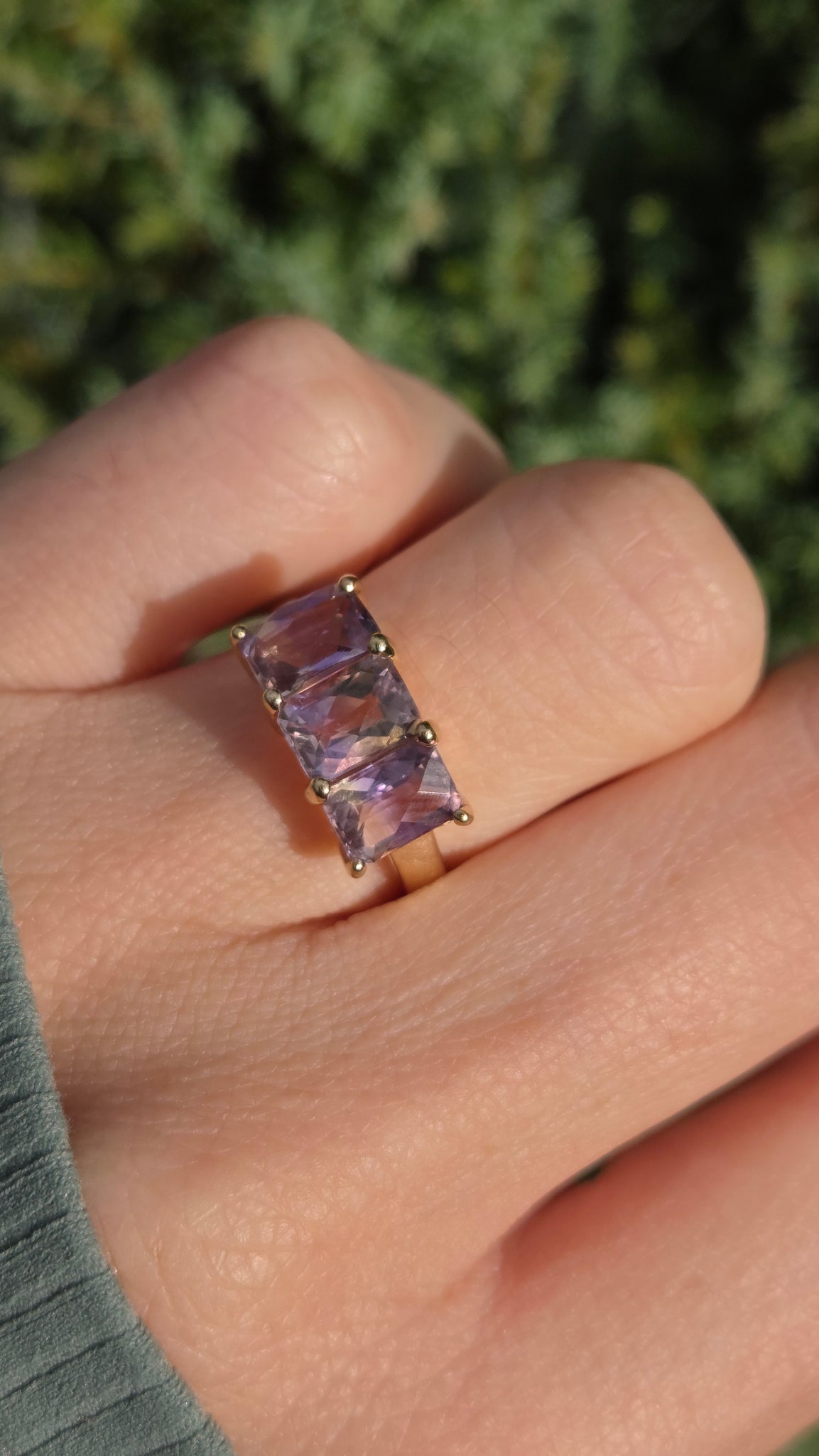 2128 Vintage & Rare: 9ct Gold rectangular Cut Ametrine Trilogy Ring