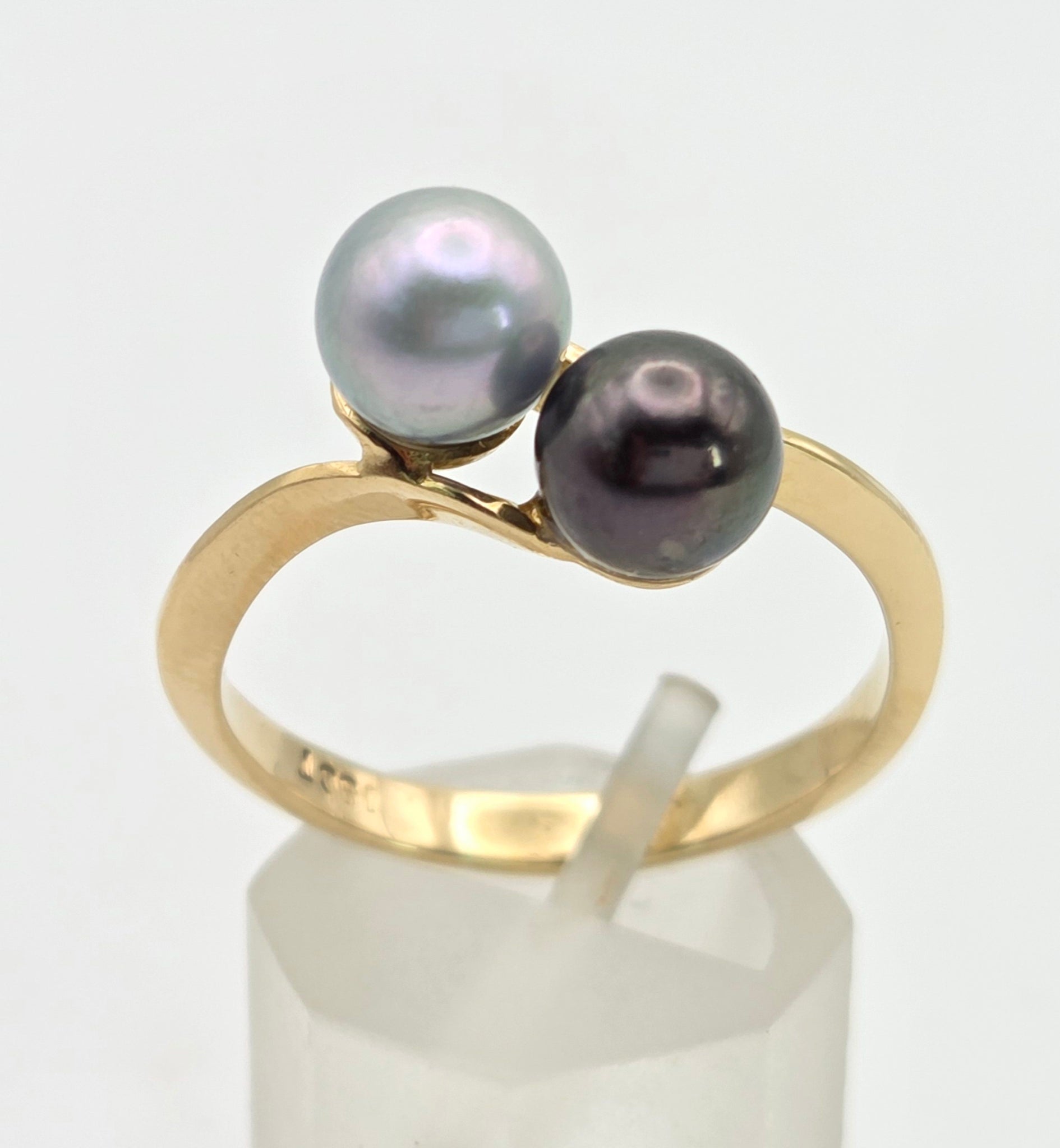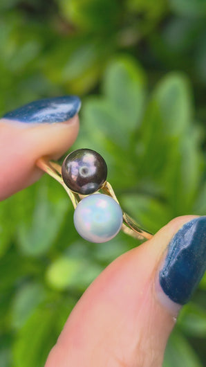 2335 Vintage: 18ct Gold Tahitian Pearls Crossover Ring