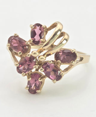 Vintage Abstract 9ct Gold Rubellites Cluster Ring- Remarkable