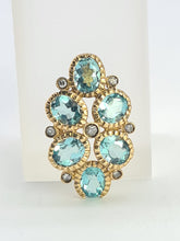 Vintage: Petite 9ct Gold Simulated Aquamarines 7 Diamonds Ring