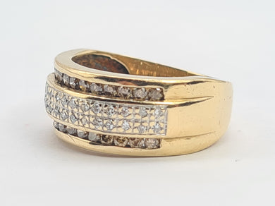0433: Vintage: 9ct Gold Champagne & White Diamonds Dress Ring- 52 natural diamonds, Fabulous