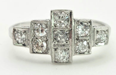 2365 Vintage: 18ct White Gold Natural Diamonds (0.55ct) Geometric Set Art Deco Style Ring