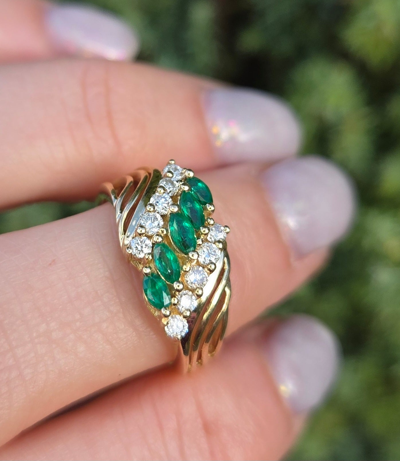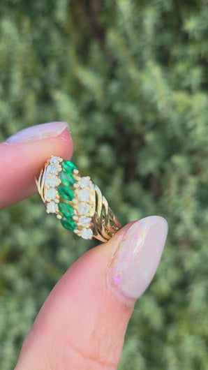 Vintage: 14ct Gold Emeralds Diamonds Openwork Ring