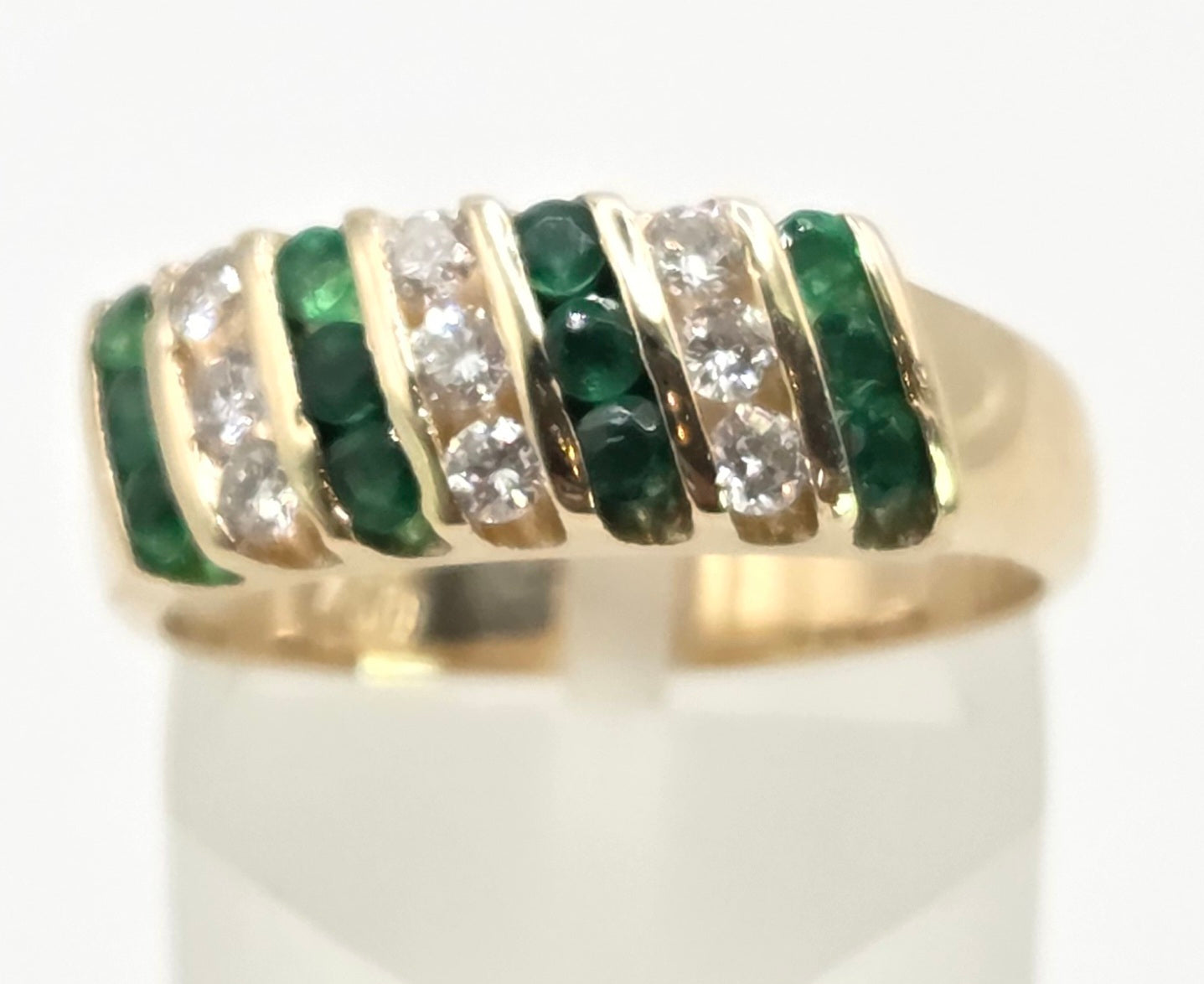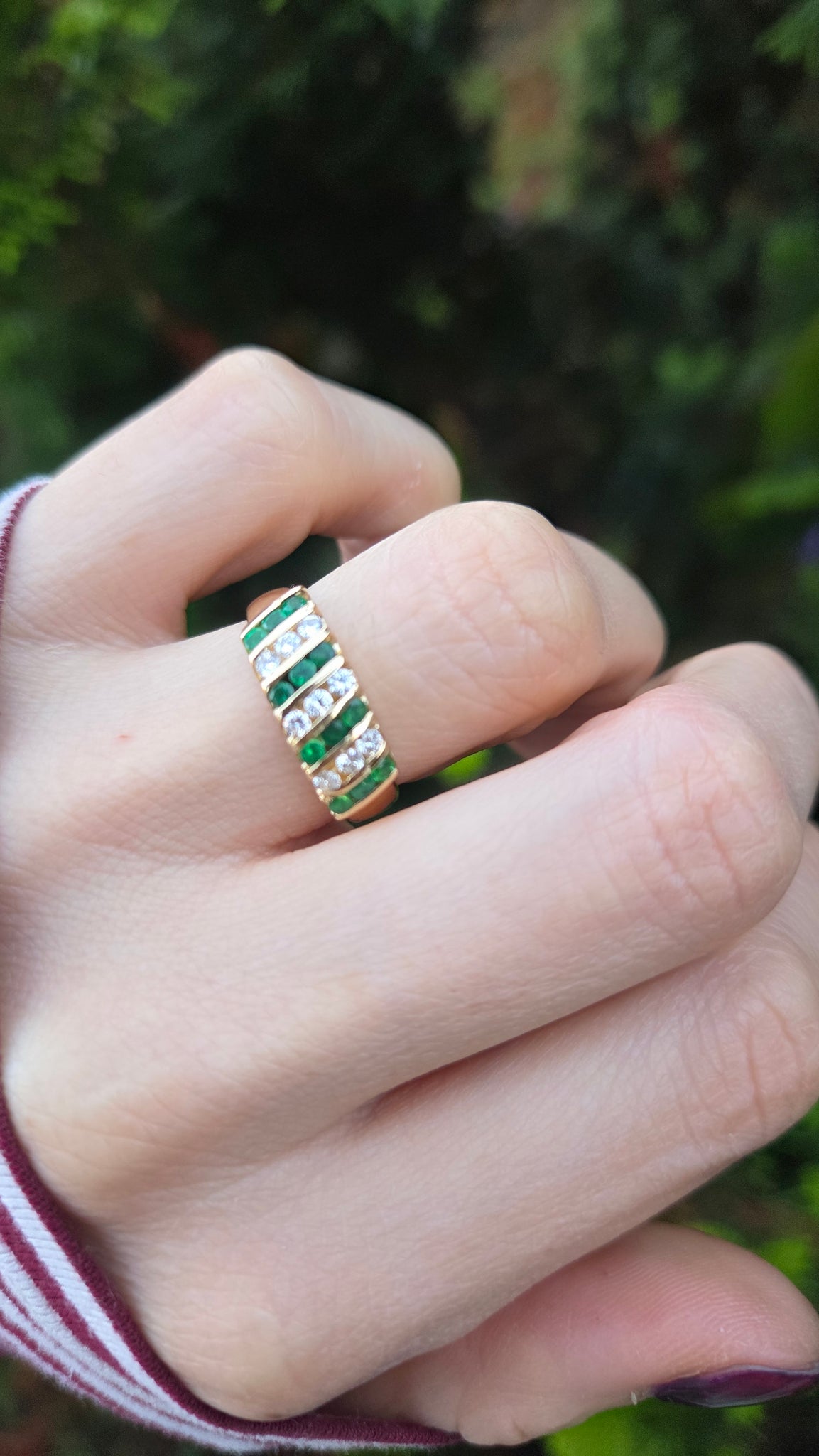 1105 Vintage: 18ct Gold Emeralds & Natural Sparkling Diamonds Dress Ring