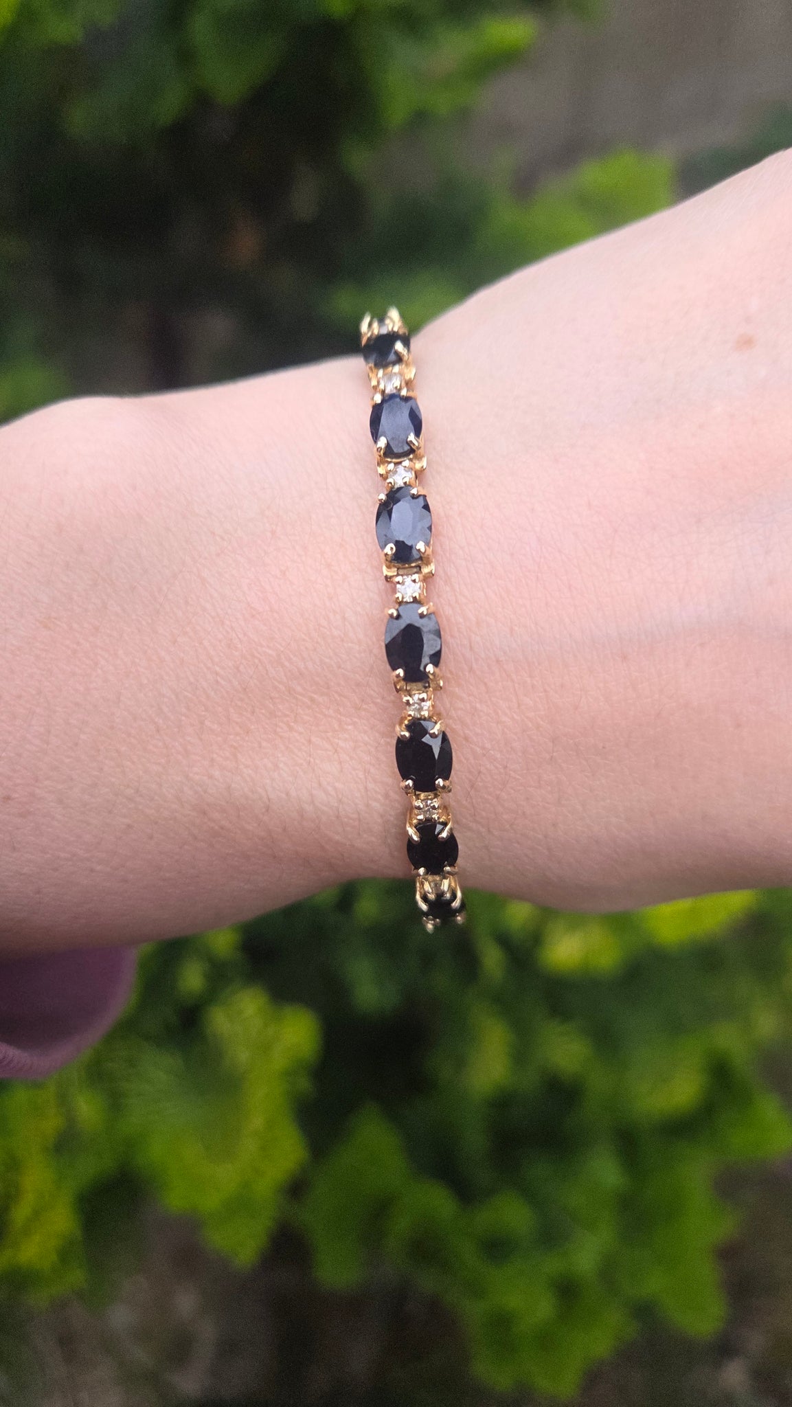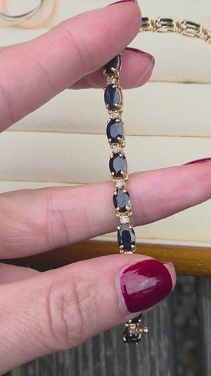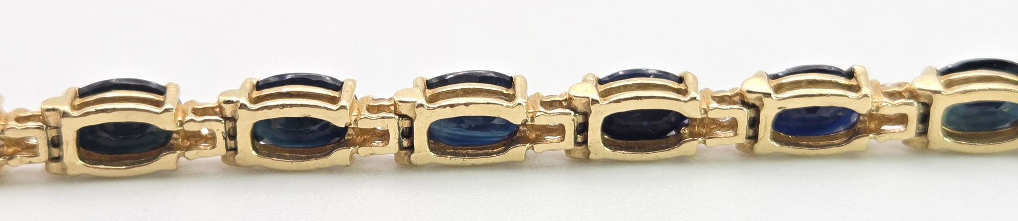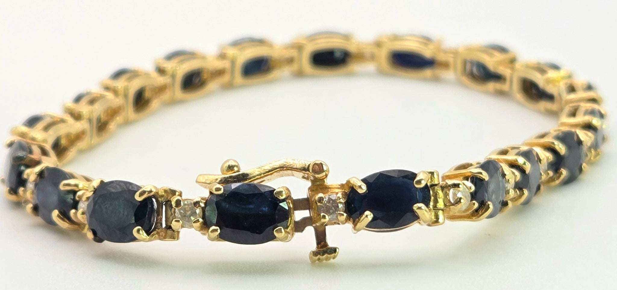 2519- Vintage 14ct Gold 19 Blue Sapphires 19 Diamonds Bracelet (19cm)