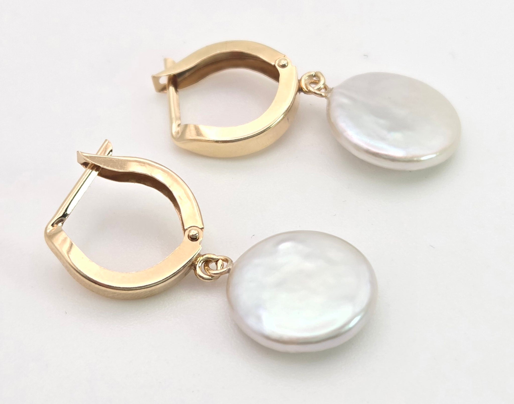 2256 Vintage: 14ct Gold Mother of Pearl Disc Clipped Stud Earrings