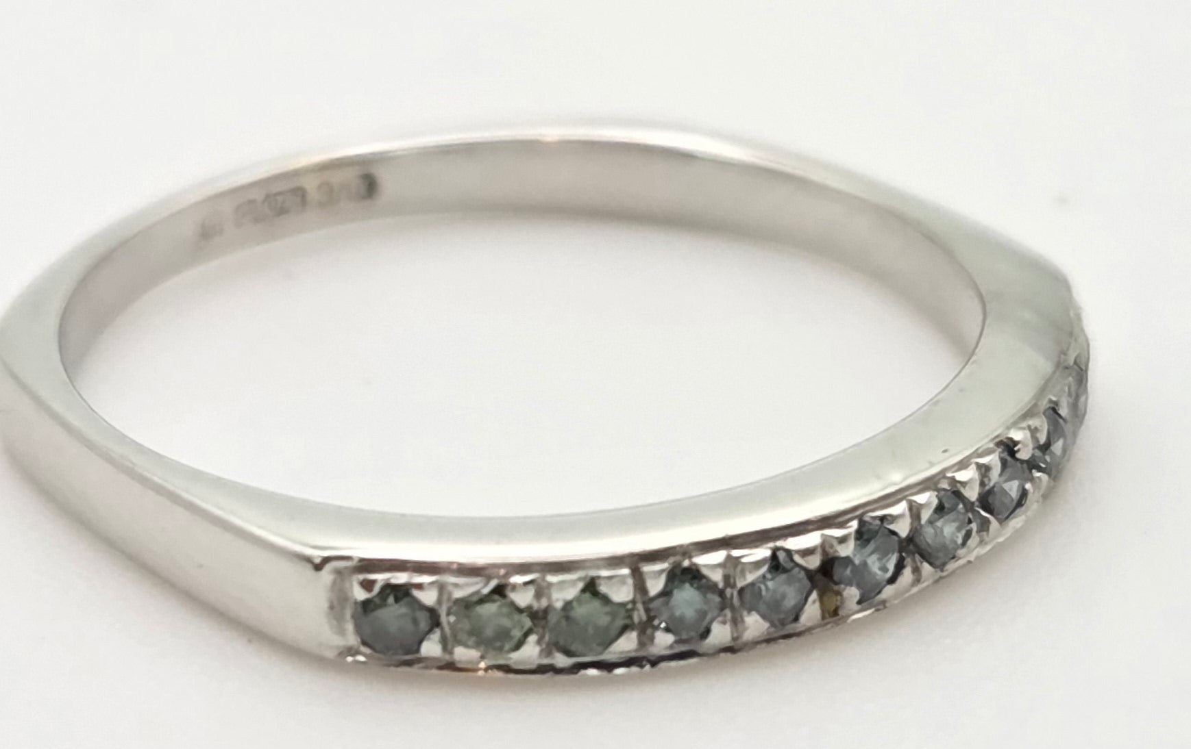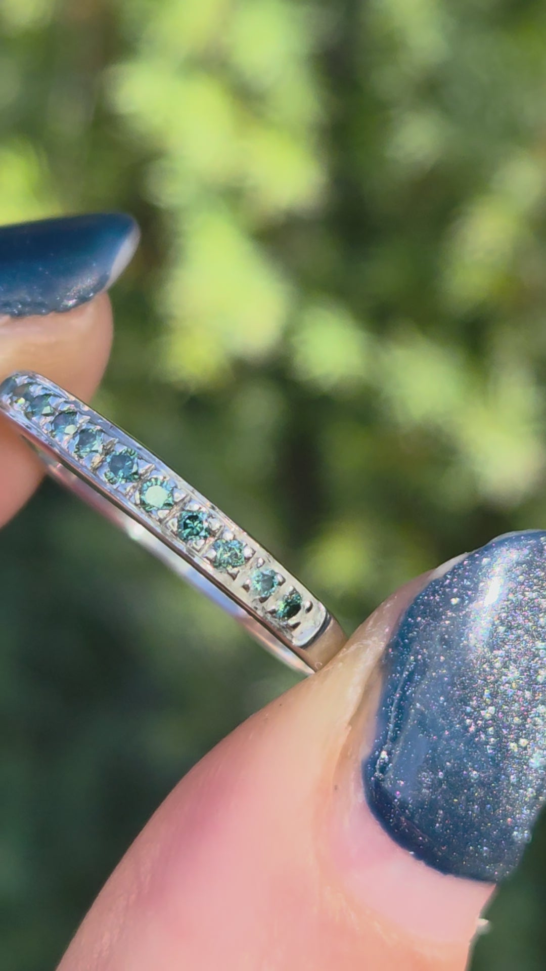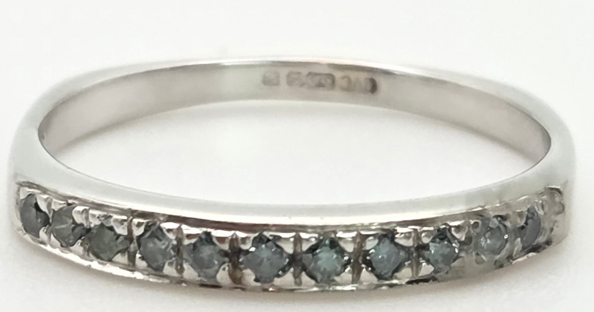 1838 Vintage: 9ct White Gold 11 Blue Natural Diamonds Stacker/Half-Eternity Ring