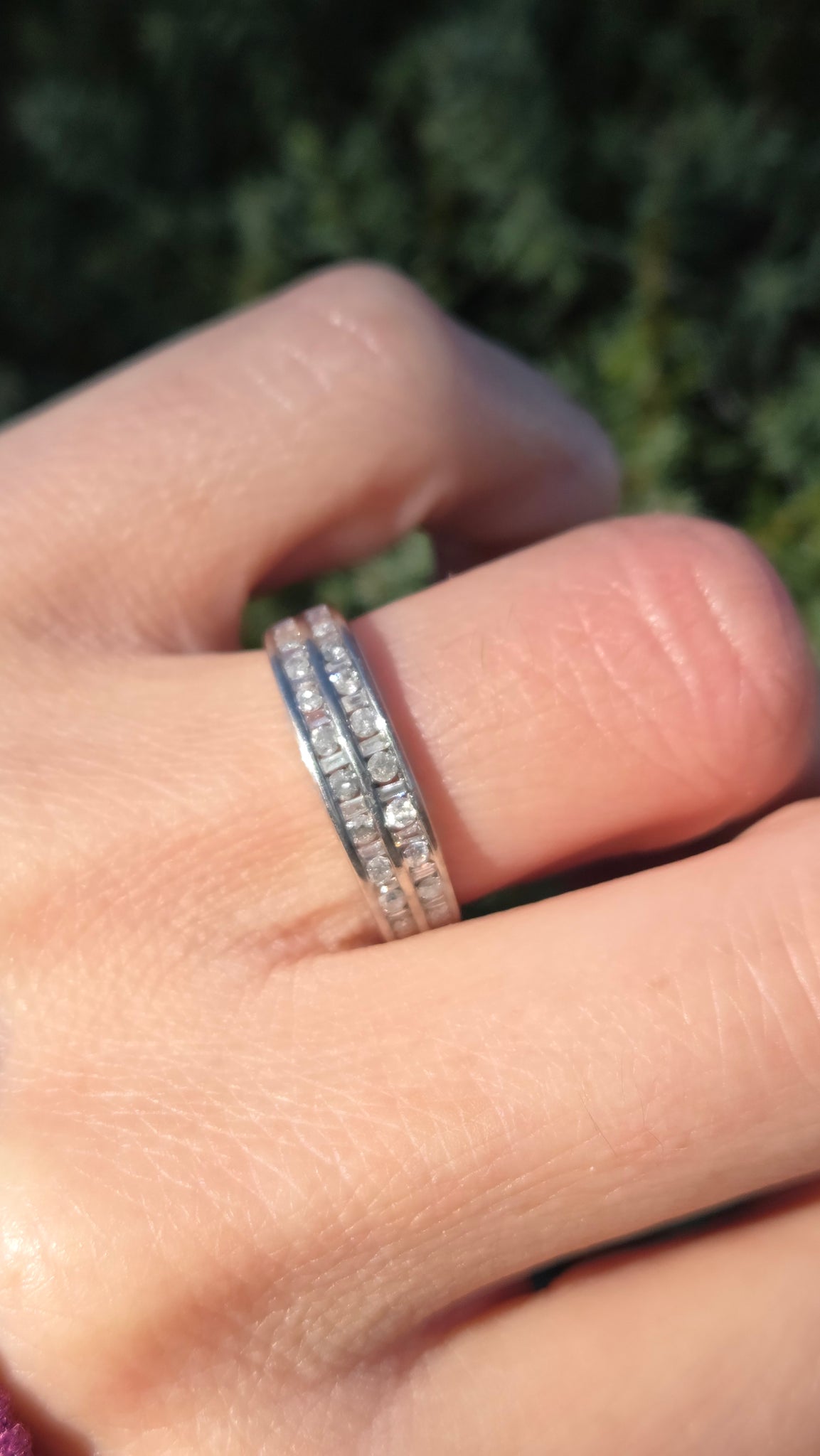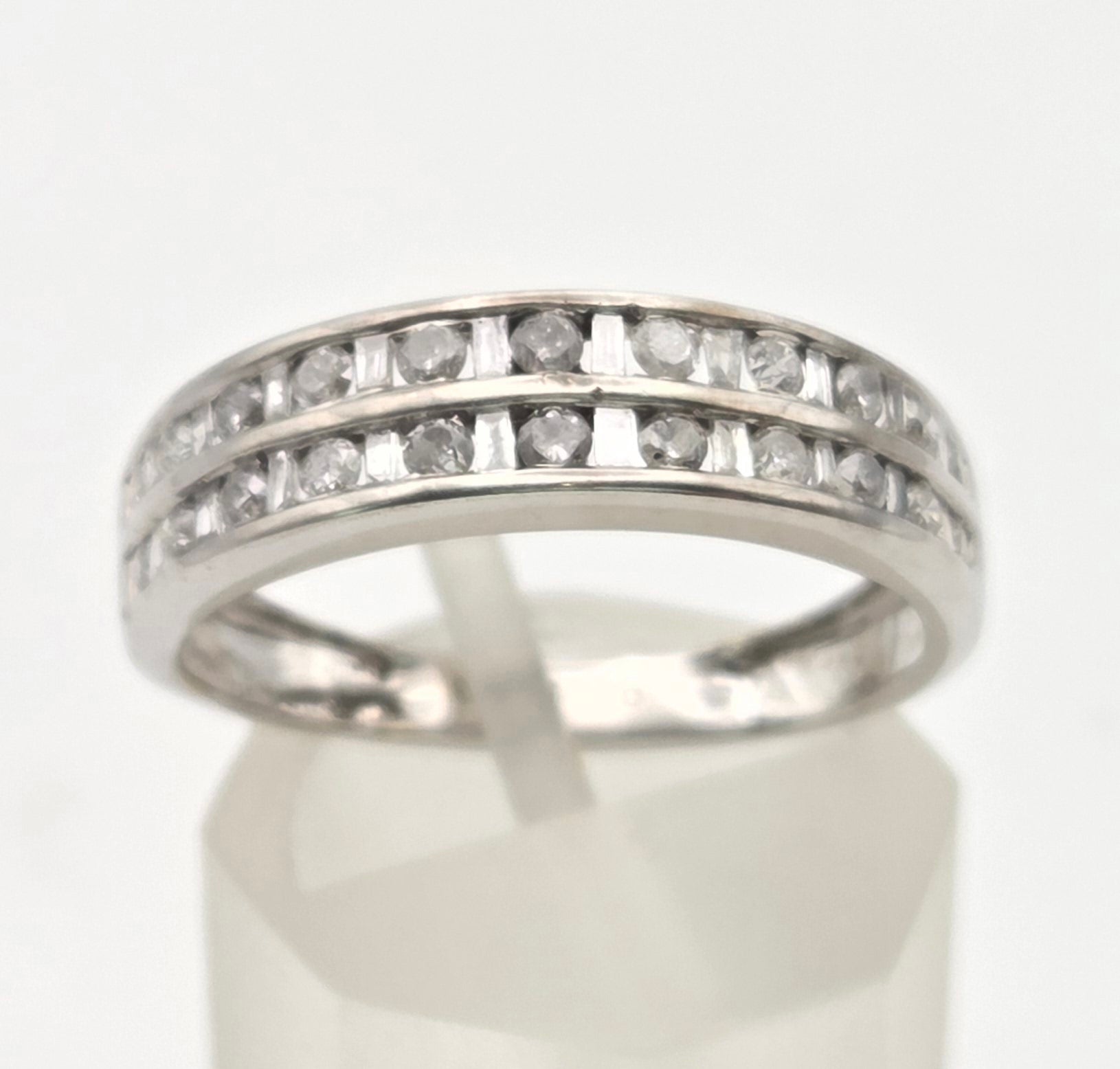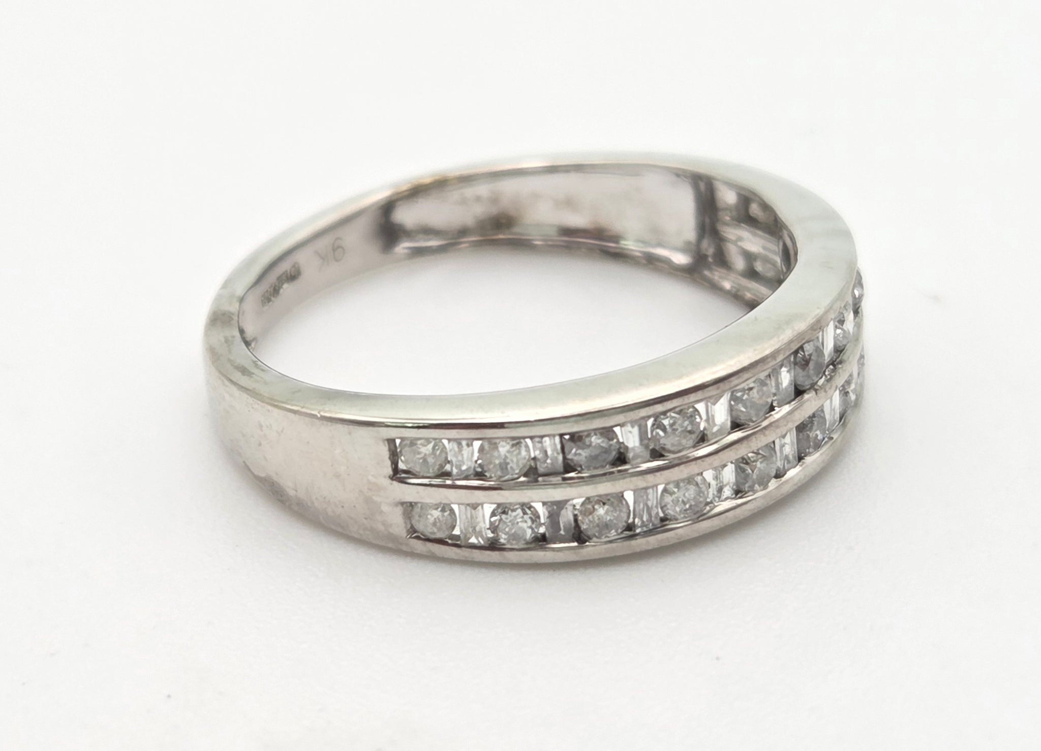 2122 Vintage: 9ct White Gold 22 Natural Diamonds Tiered Stacker/ Dress Ring
