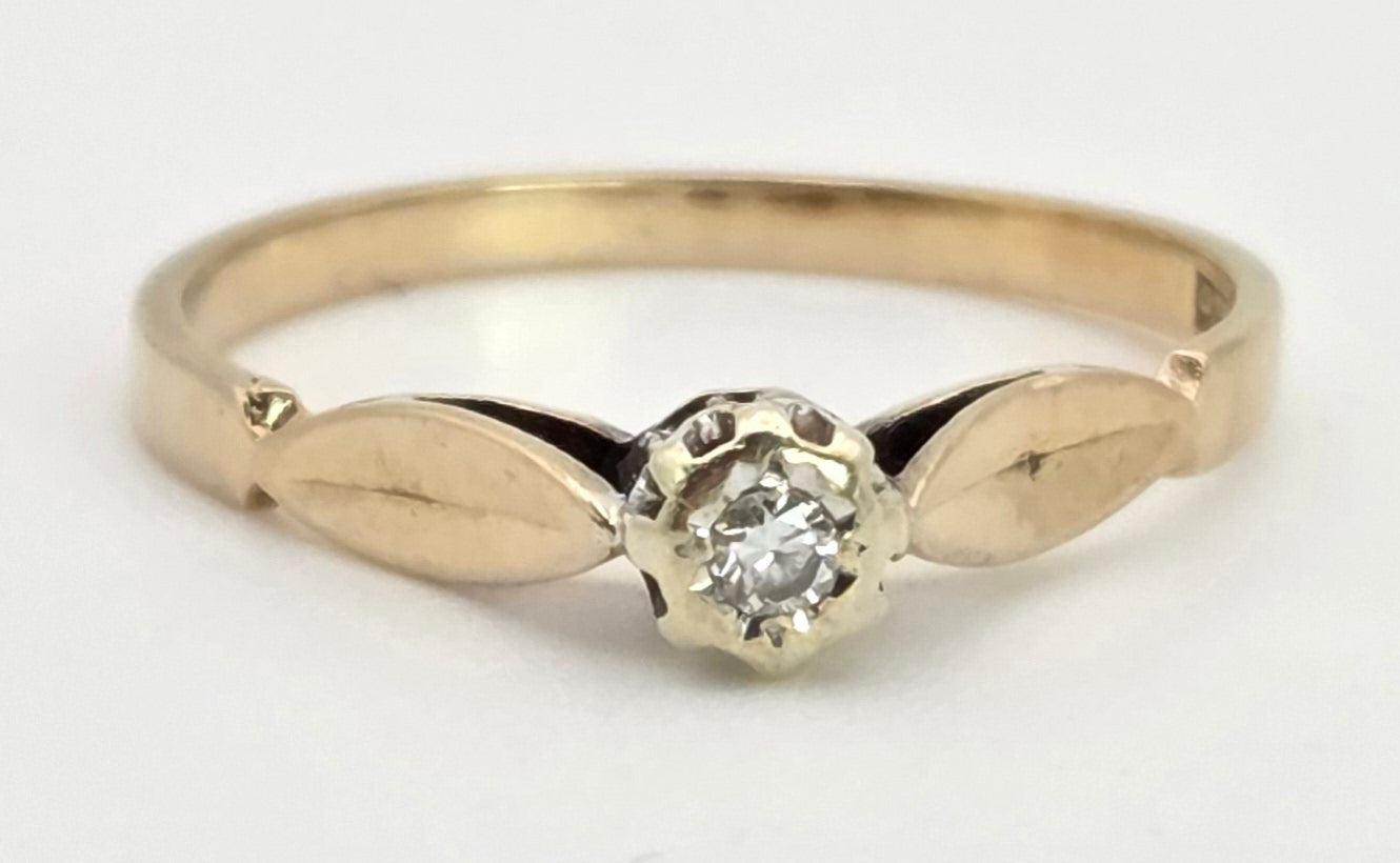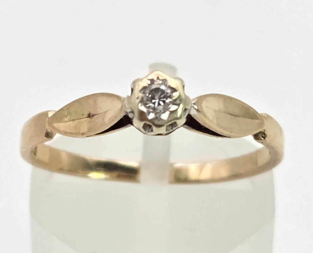 0116 Vintage: Petite 9ct Gold Round Full Cut Diamond Solitaire Ring- From 1981