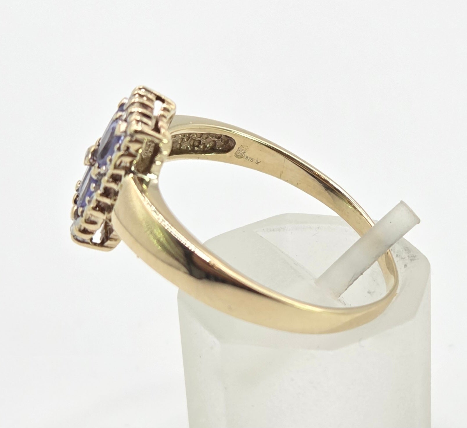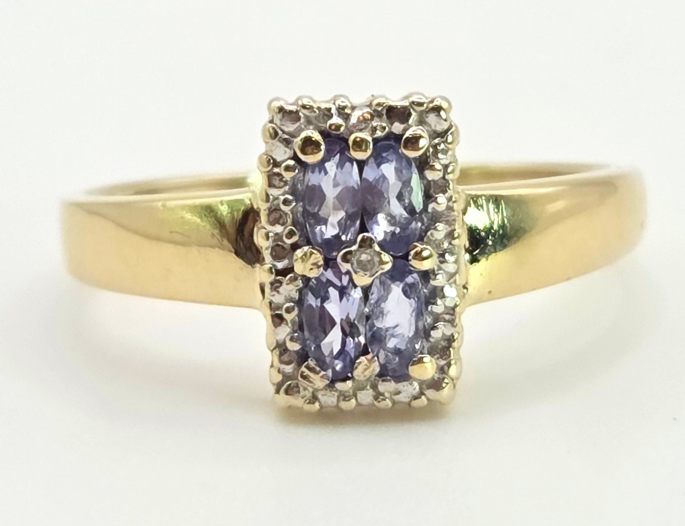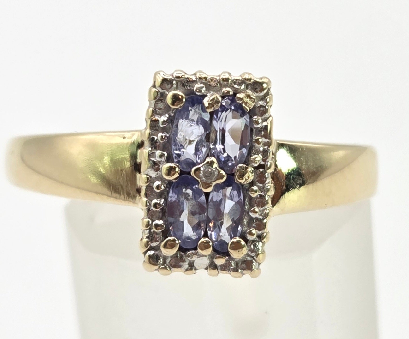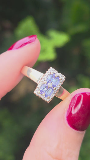 1134 Vintage: 9ct Gold Blue Tanzanites Diamond Geometric Set Ring
