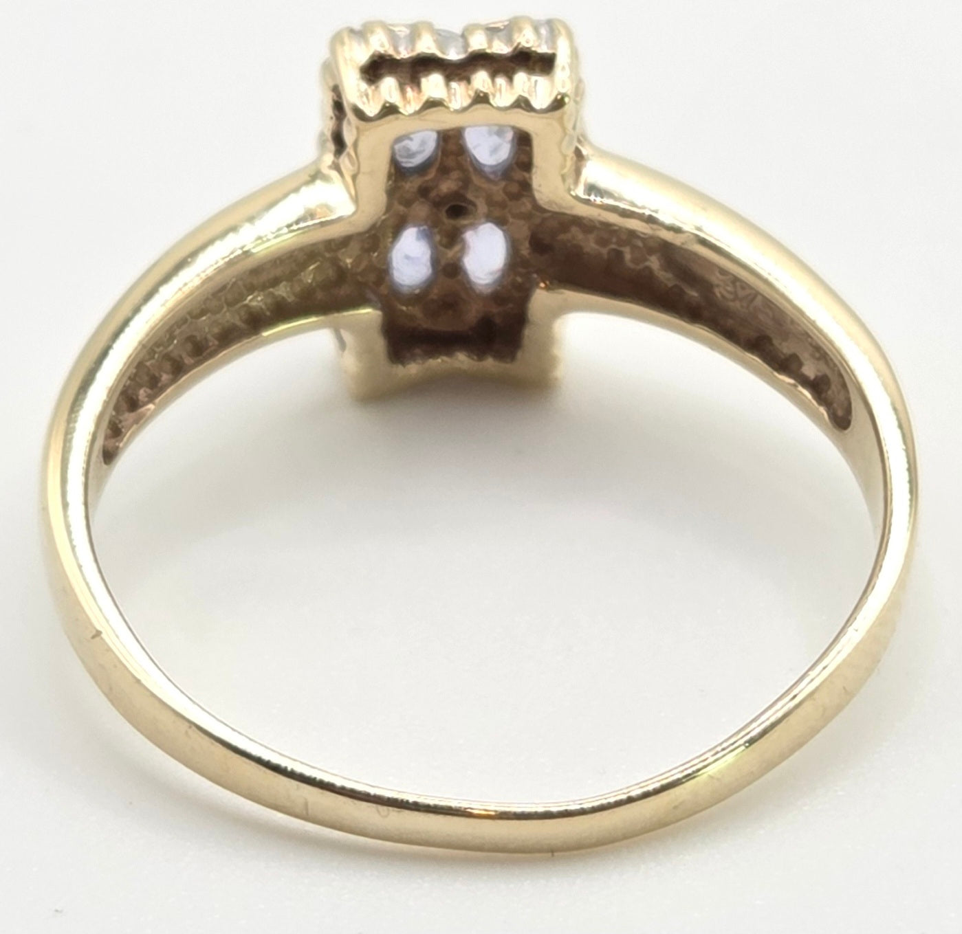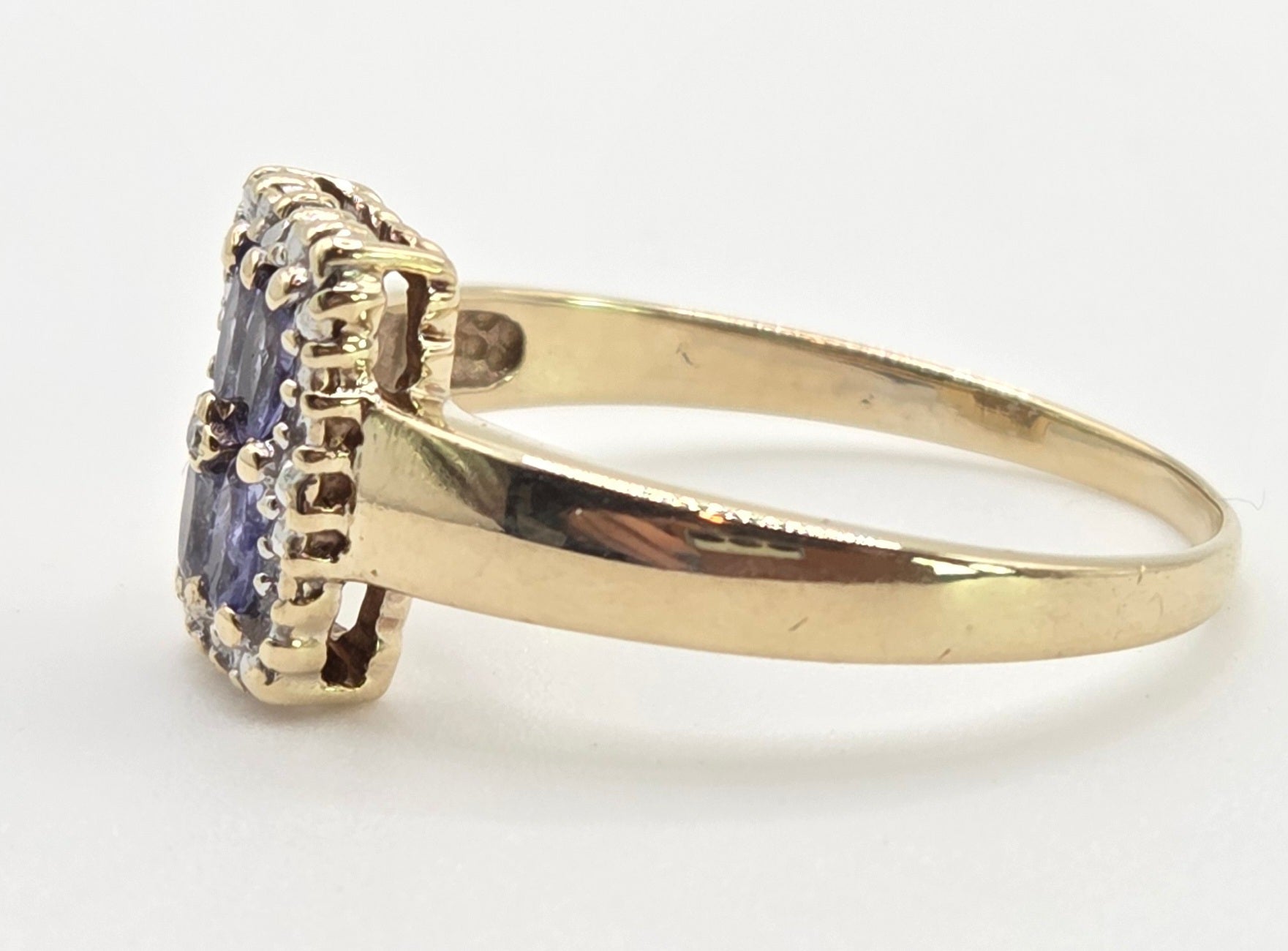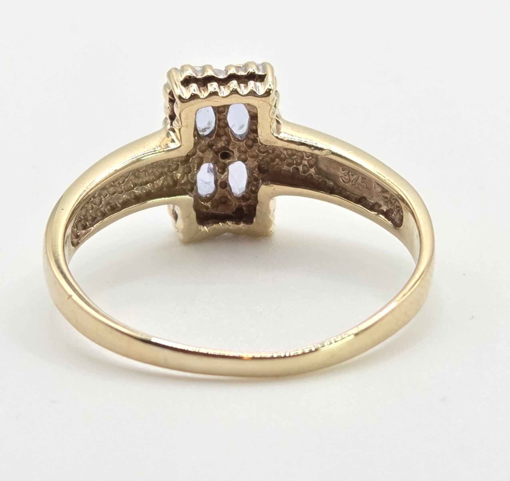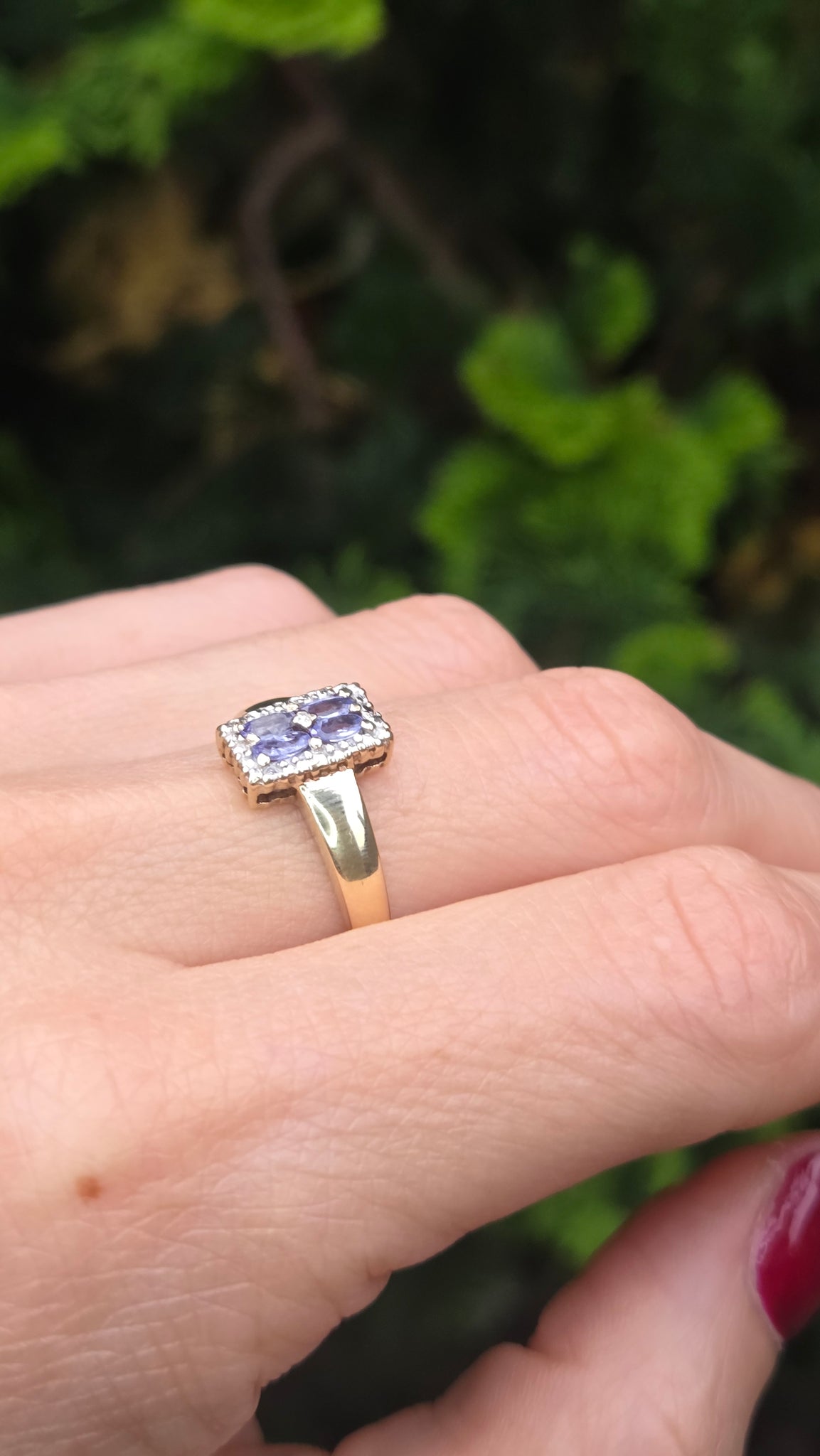 1134 Vintage: 9ct Gold Blue Tanzanites Diamond Geometric Set Ring