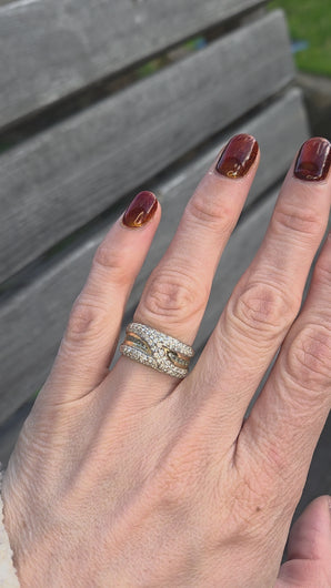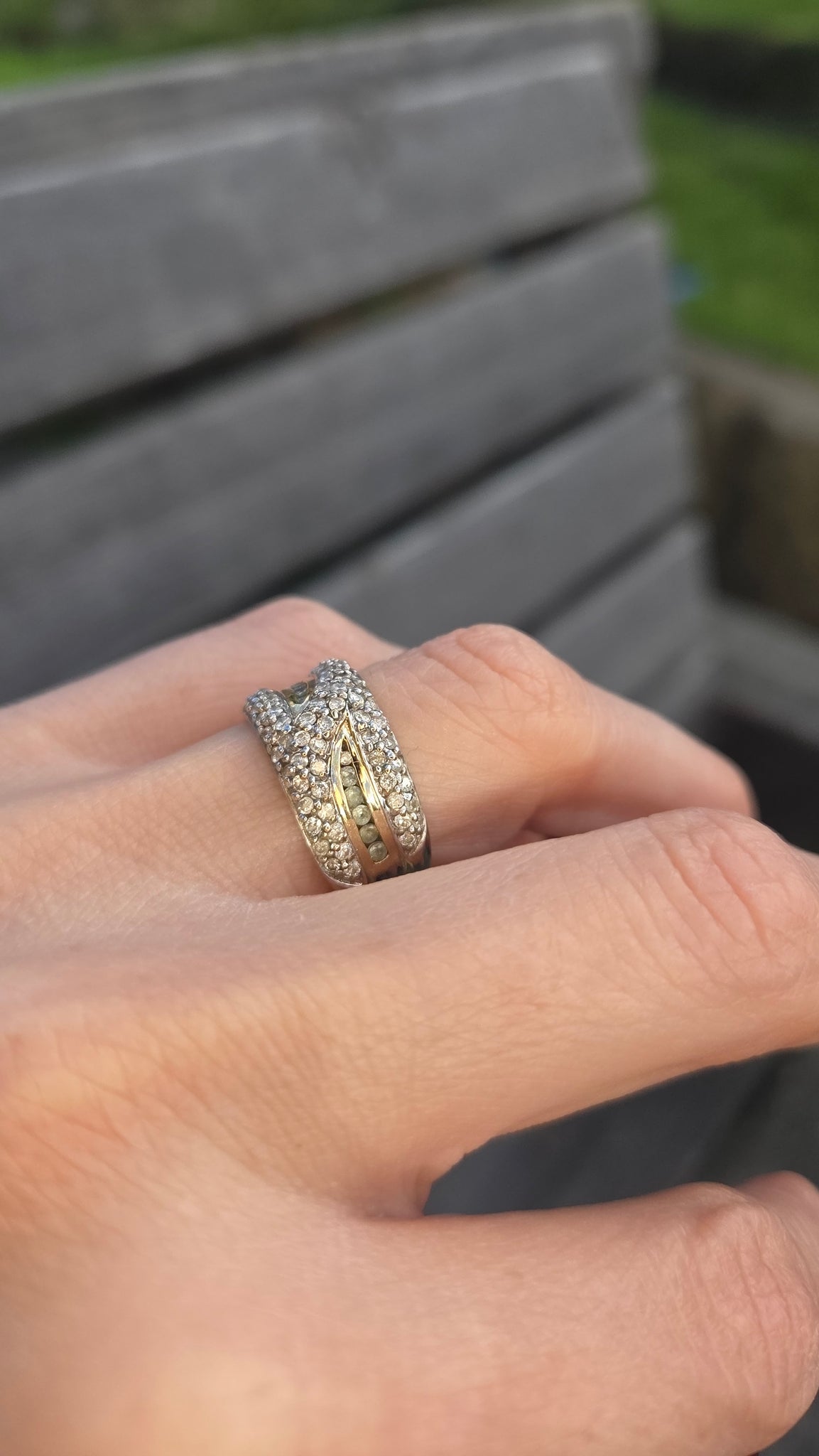 6178 Vintage: Statement 9ct Gold 65 Diamonds Green Amethyst Ring