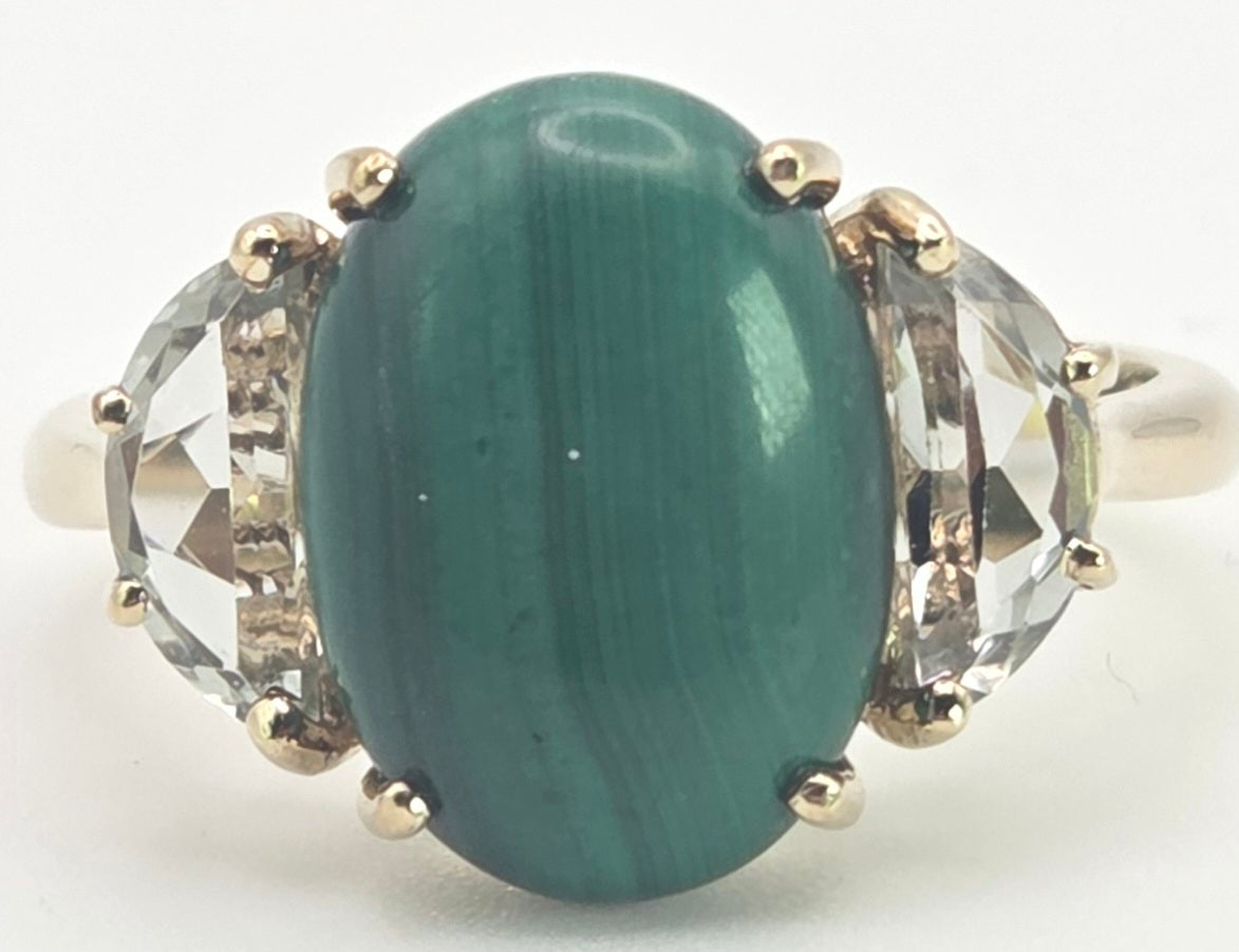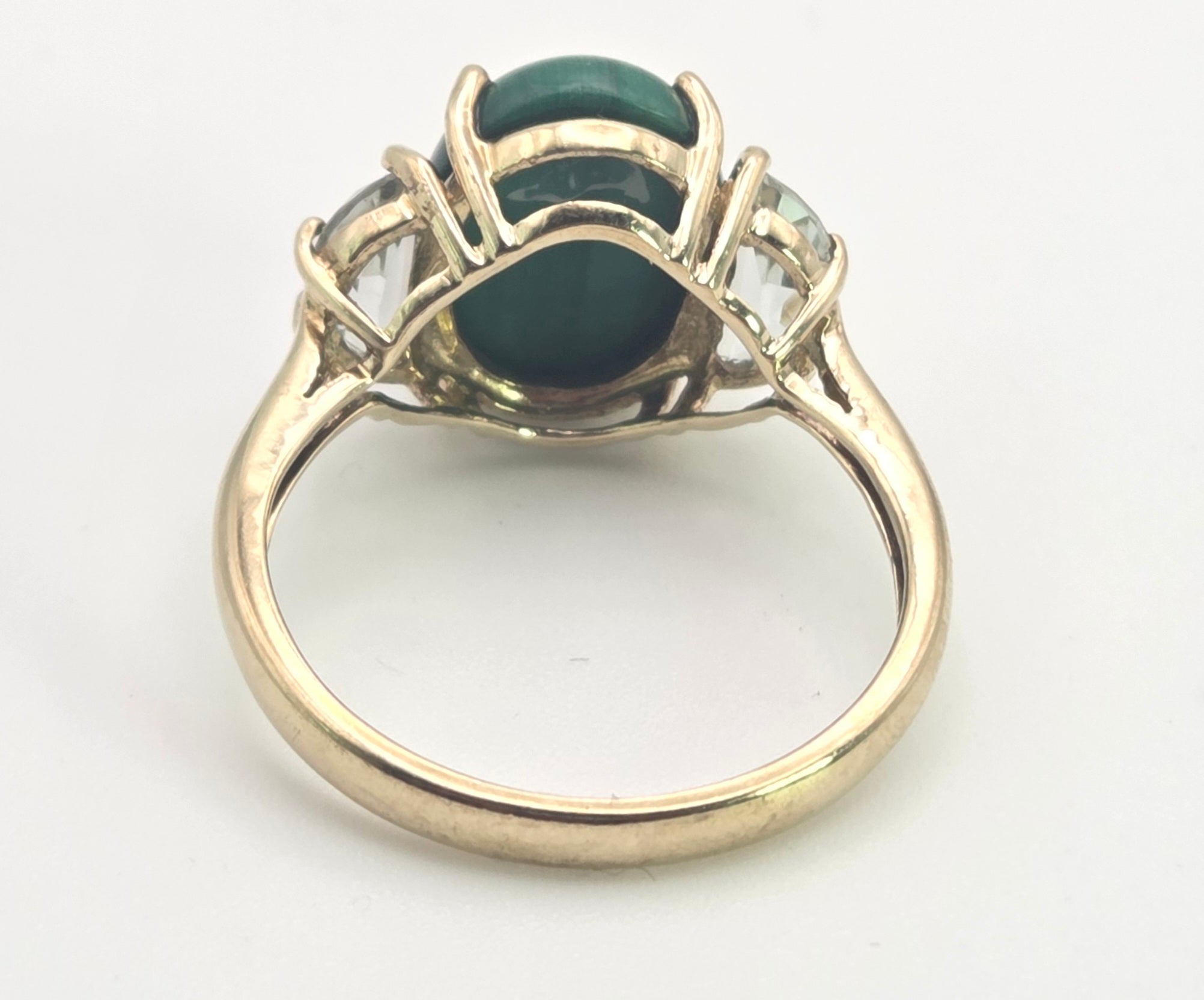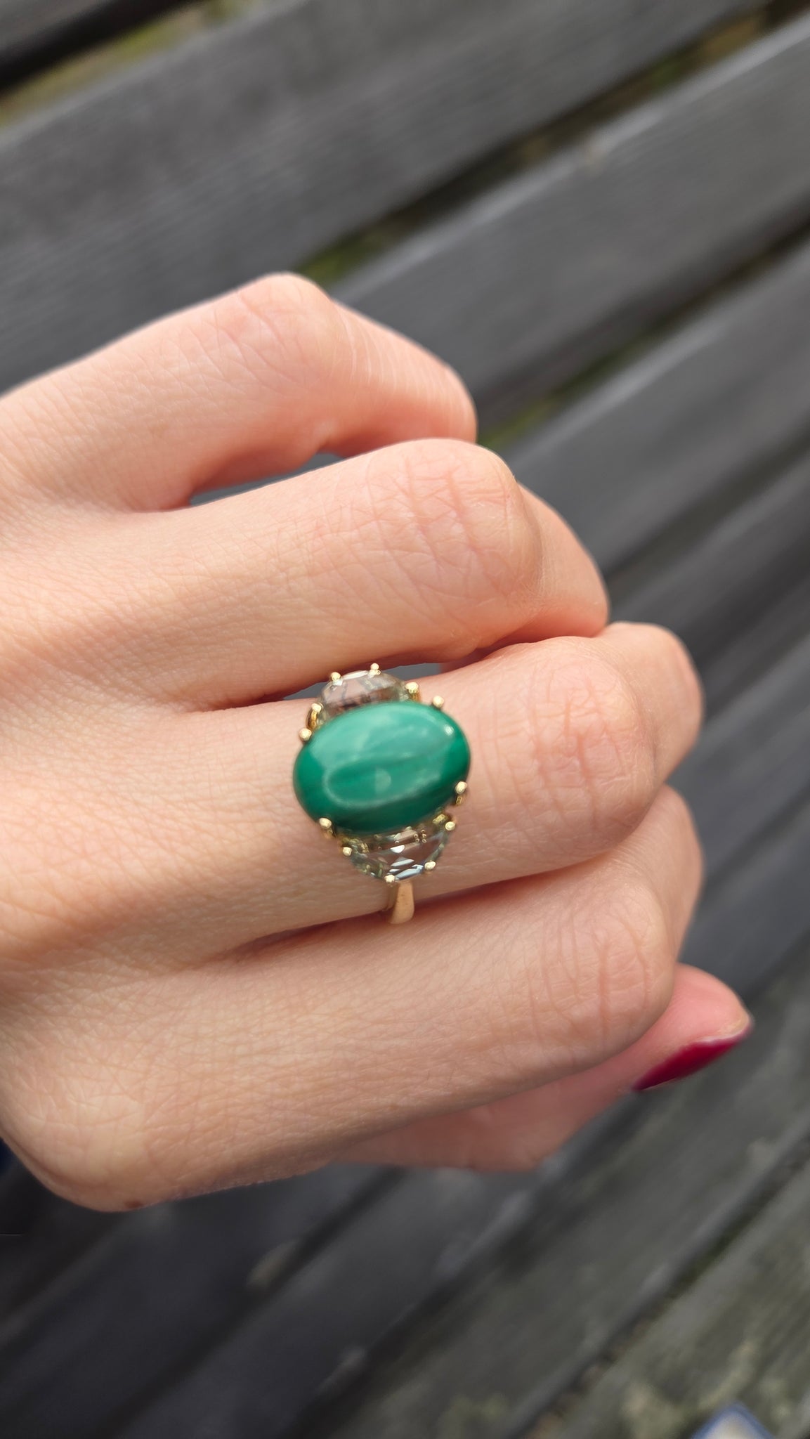 2487 Vintage; 9ct Gold Large Malachite Aquamarines Cocktail Ring